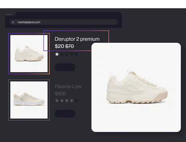 AI-generated fraud requires AI-based detection; keyword monitoring alone cannot surface modern counterfeit activity. Counterfeiters now use synthetic content and distribution tactics designed specifically to evade traditional filters. On the Red Points platform, Vision AI flags counterfeit listings that reuse or lightly alter authentic imagery, and ad-to-landing-page detection helps uncover non-indexed storefronts reached through paid social and redirect chains.